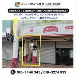 Alamat: NO 30, Peguam Syarie Melaka : Nurhidayah & Partners, 1, Jalan KF 2, KOTA FESYEN MITC, 75450 Melaka, Malaysia.